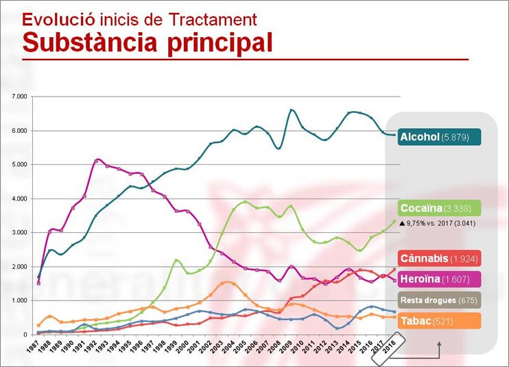 Augmenta la demanda de tractament per cocaïna a Catalunya en els últims tres anys després d'un període d'estancament. El tancament de narcopisos ha portat moltes persones consumidores a les sales supervisades.