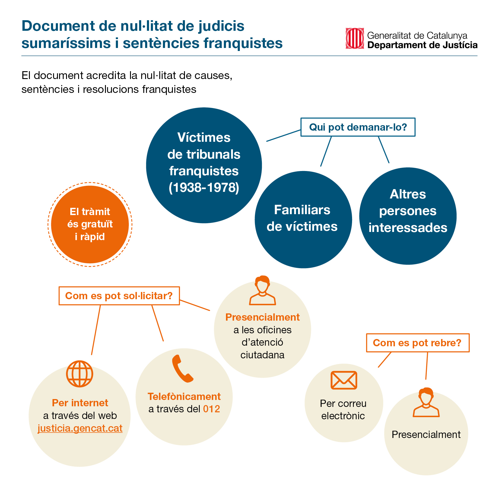 Justícia rep 3.468 sol·licituds per obtenir el document de nul·litat dels judicis franquistes. Amb Franco es van instruir procediments judicials militars per causes polítiques contra 66.629 persones