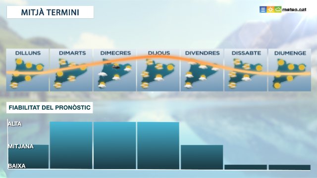 El Servei Meteorològic de Catalunya presenta un nou vídeo amb la predicció meteorològica a mitjà termini. Aquest nou servei s'oferirà a les xarxes en format audiovisual, s'actualitzarà dos cops per setmana