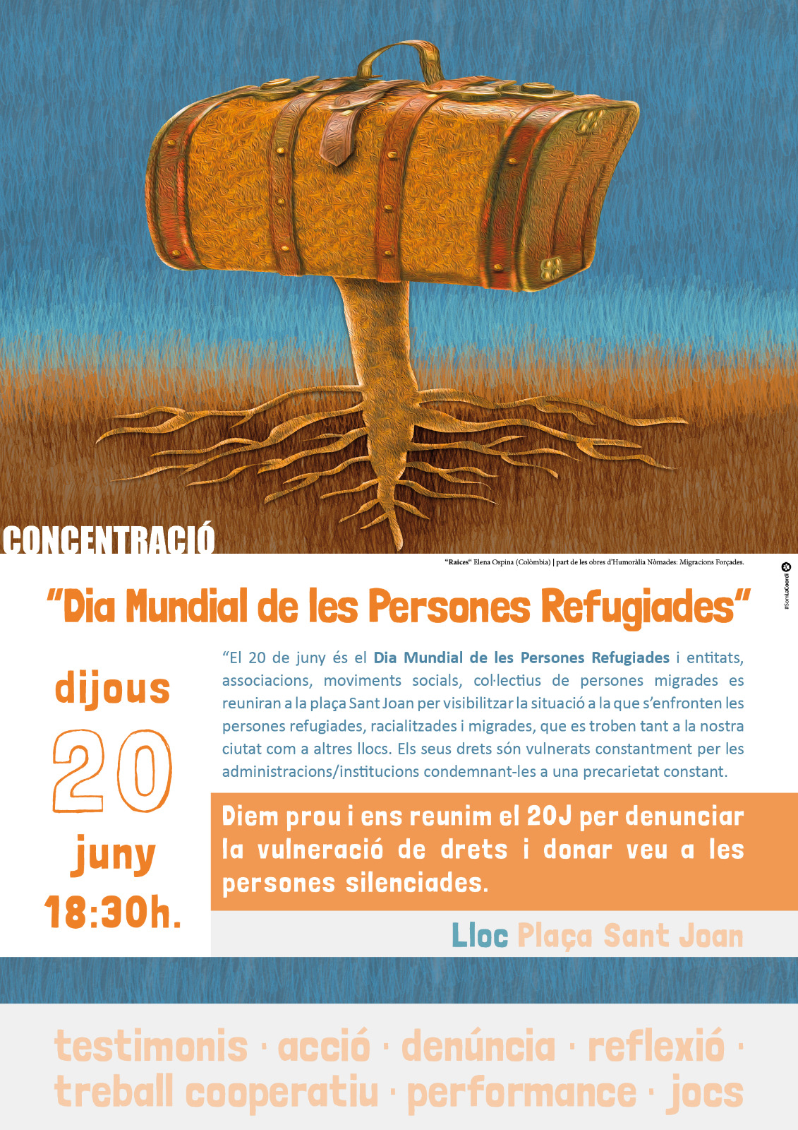 Més d'una desena d'entitats de Lleida surten al carrer el 20J, Dia Mundial de les Persones Refugiades. Faran activitats de sensibilització i denúncia a partir de les 18:30h a la Plaça Sant Joan de Lleida.