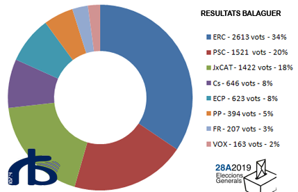 ERC ha guanyat les eleccions generals a Balaguer, seguint la mateixa tendència de la resta de Catalunya. L'alcalde, el republicà Jordi Ignasi Vidal ha valorat de forma molt positiva els resultats de la seva formació