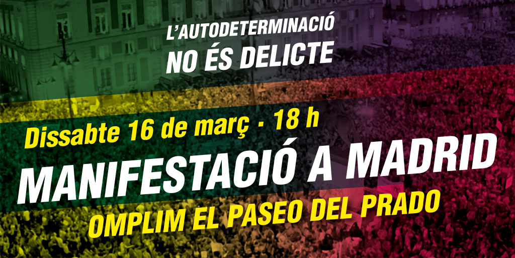 L'independentisme i una cinquantena d'entitats espanyoles es manifesten dissabte a Madrid contra el judici de l'1-O Una marxa recorrerà el passeig del Prado a les 18 hores amb el lema 'L'autodeterminació no és delicte. Democràcia és decidir'