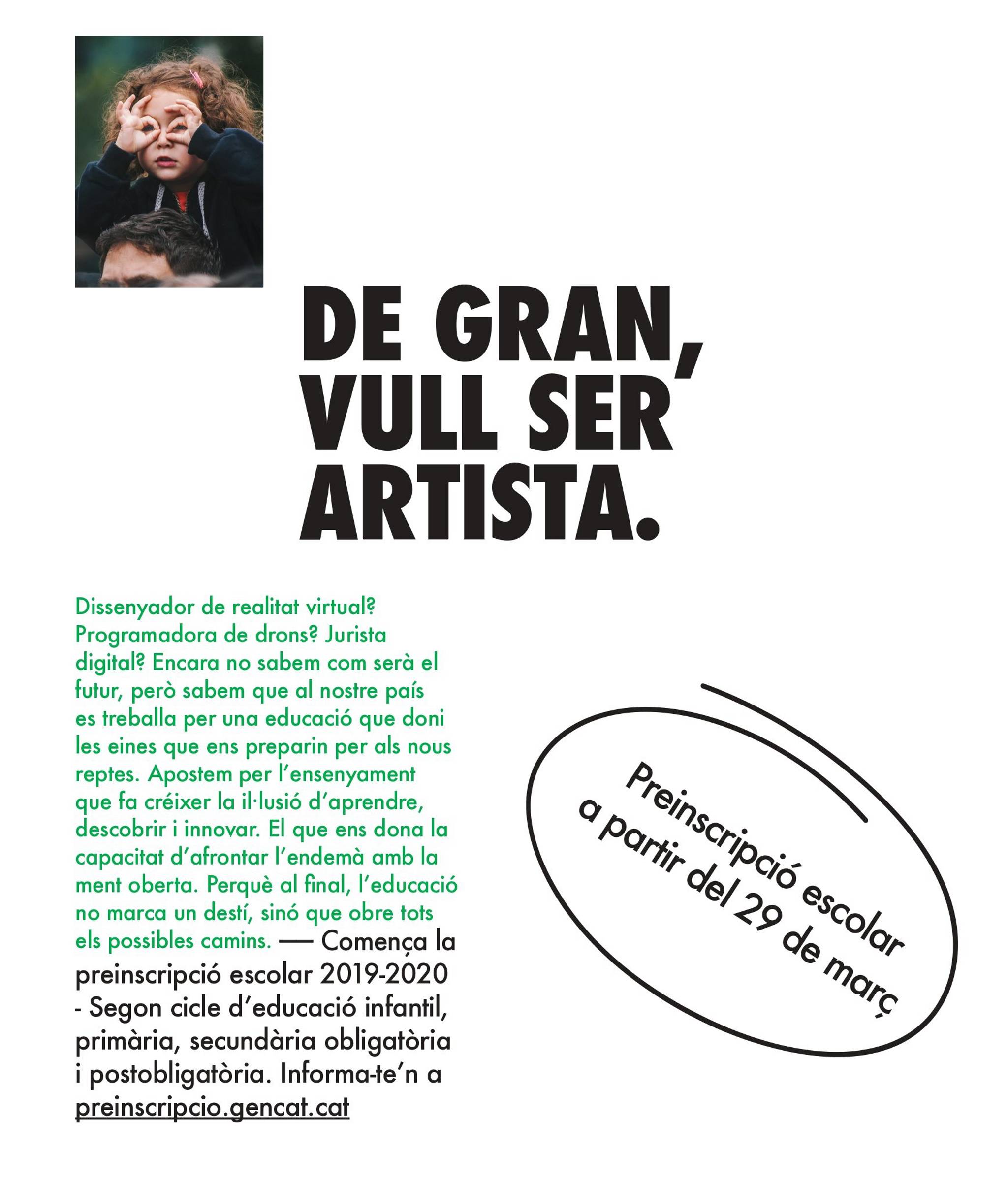 La preinscripció dels ensenyaments obligatoris serà del 29 de març al 9 d'abril