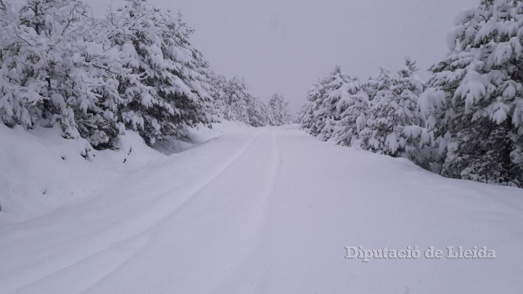 Una trentena de carreteres afectades per la tempesta de neu a la xarxa viària catalana. La majoria a la demarcació de Lleida amb l'obligatorietat de circular amb cadenes, vies restringides als camions o tancades