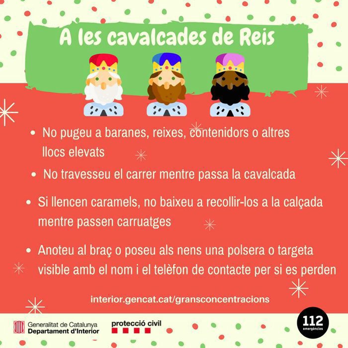 Consells de Protecció Civil de la Generalitat per a una cavalcada de Reis segura