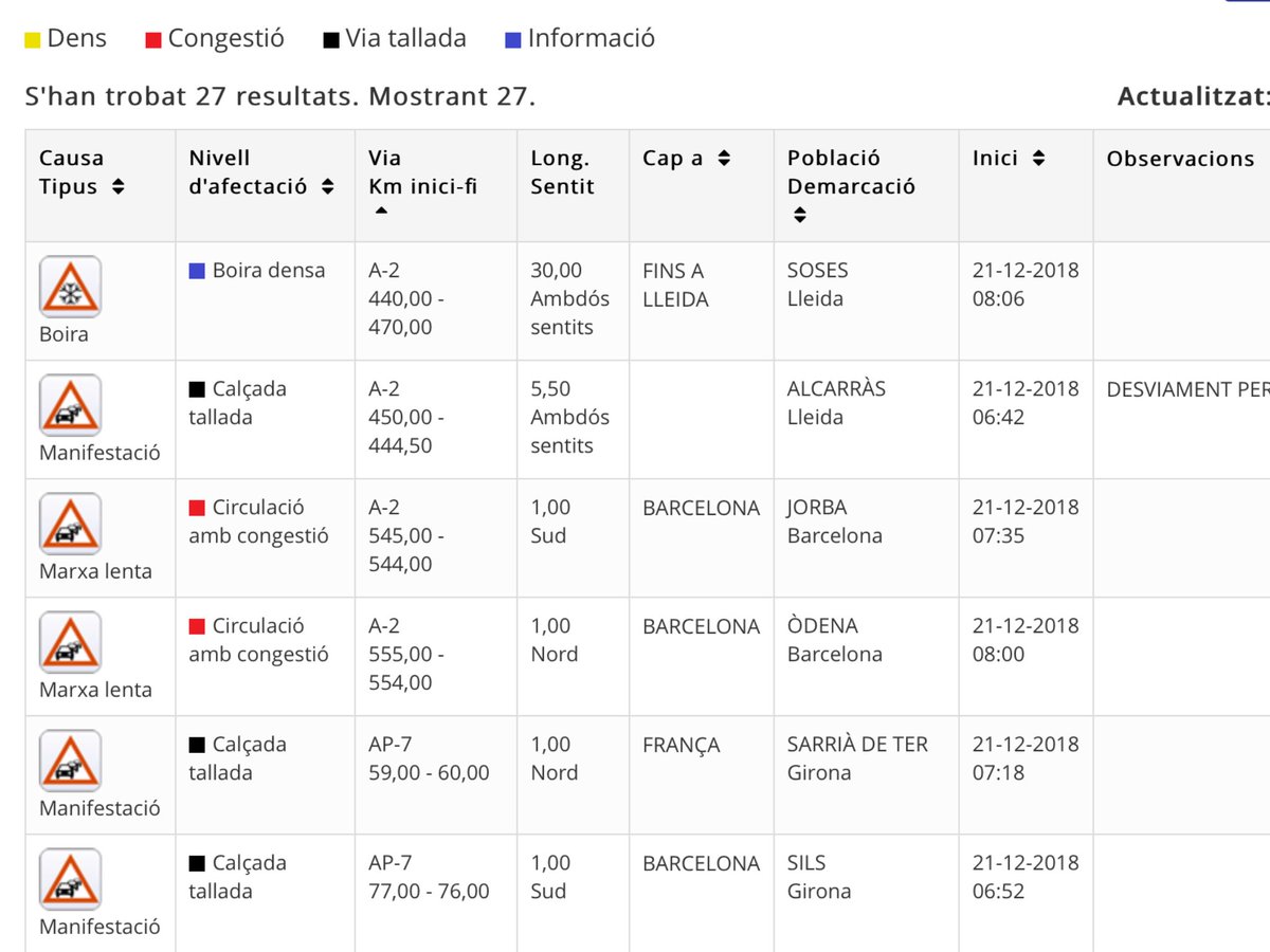 Les rondes, l'AP-7 a Girona i l'Ampolla i l'A-2 a Alcarràs, entre les vies afectades per les protestes pel 21-D. Els Mossos demanen a la concessionària que aixequin barreres al peatge a l'AP-2 a Soses