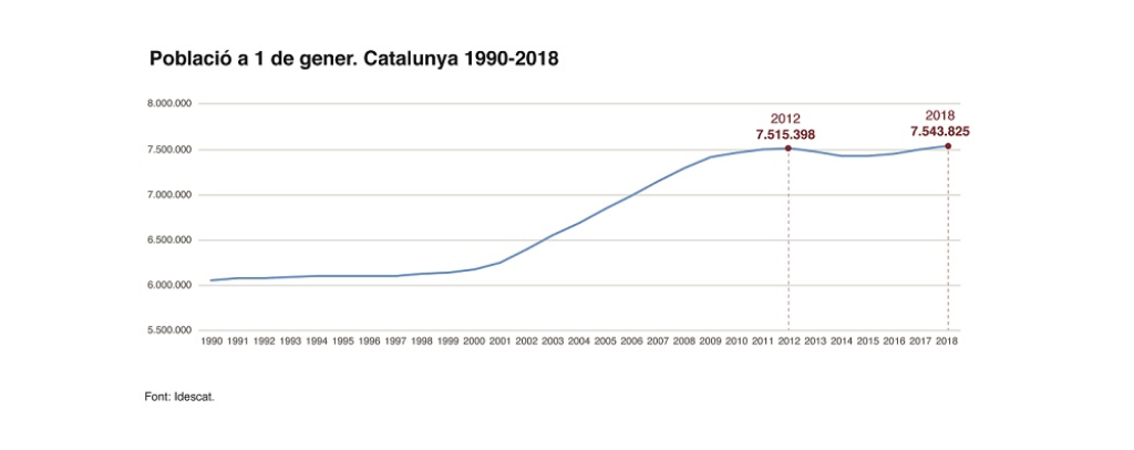 Catalunya arriba al seu màxim històric de població amb 7.543.825 habitants La immigració és el principal component del creixement durant el 2017