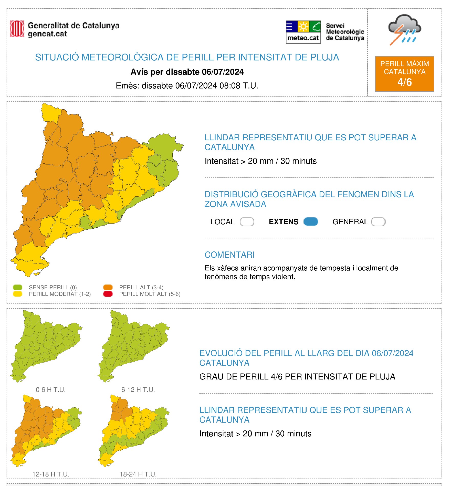 Protecció Civil manté l'alerta per tempestes fortes aquest dissabte a la nit a gran part de Catalunya