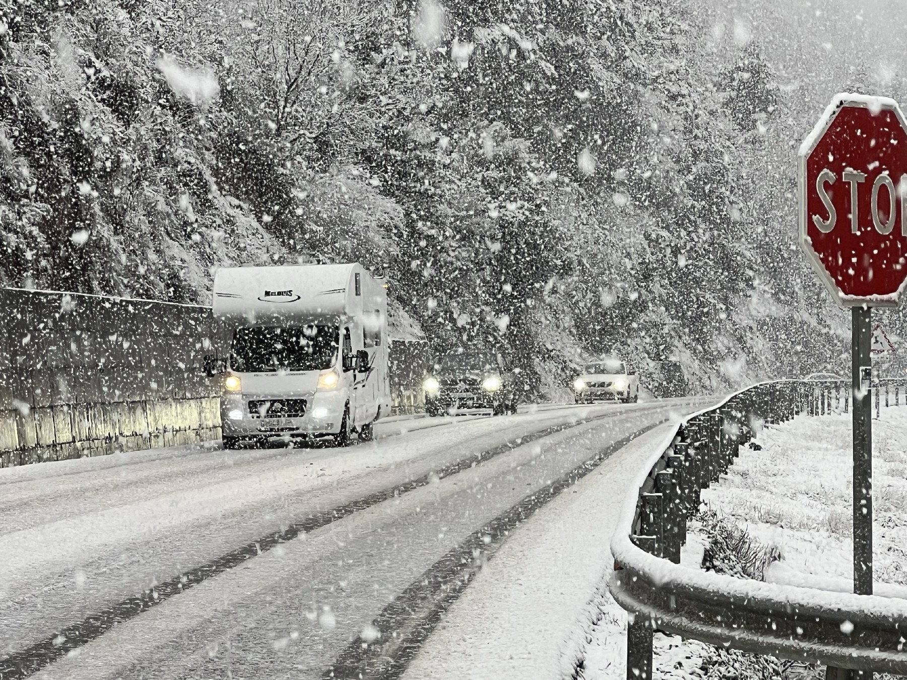 La neu cau amb intensitat al Pirineu i ja afecta una trentena de carreteres. Calen cadenes als túnels de Vielha i del Cadí, el port de la Bonaigua, el port del Cantó i el coll de la Creueta