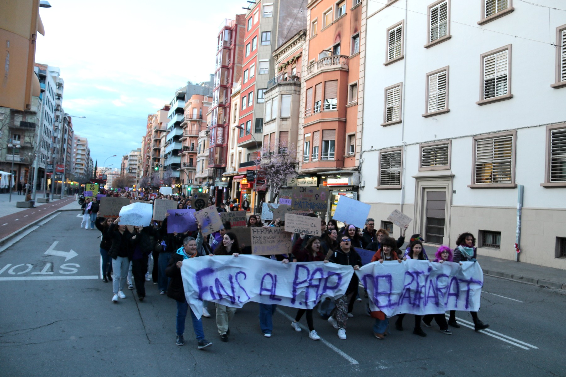 Unes 500 persones exigeixen a Lleida una igualtat 'efectiva i real' en motiu del 8-M. La manifestació convocada per Marea Lila també ha donat suport a la revolta pagesa i a les dones del sector