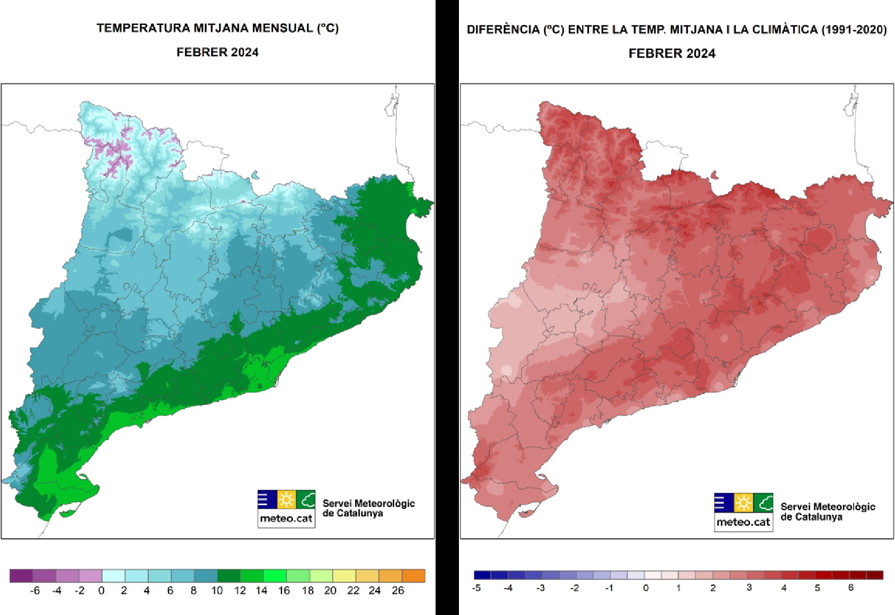 Catalunya viu un hivern excepcionalment càlid amb mitjanes rècord de 12,2°C i 13°C a Barcelona i a l'Ebre. Més de la meitat del territori ha tingut anomalies superiors a 2°C