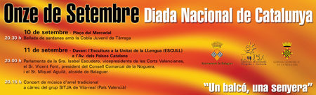 Balaguer convida al País Valencià als actes de la Diada Nacional de Catalunya. Els actes s'iniciaran el dimecres 10 de setembre amb una ballada de sardanes i amb un sopar popular a la Plaça Mercadal.