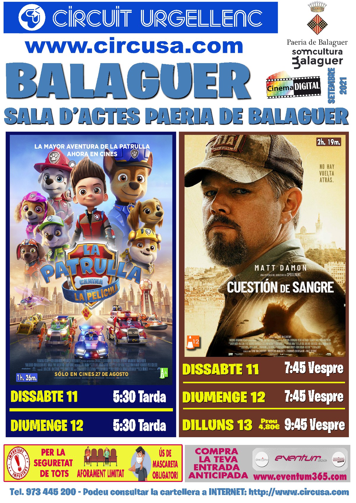 Arriba al Cinema Balaguer la pel·lícula d'animació de LA PATRULLA CANINA i també el film CUESTIÓN DE SANGRE