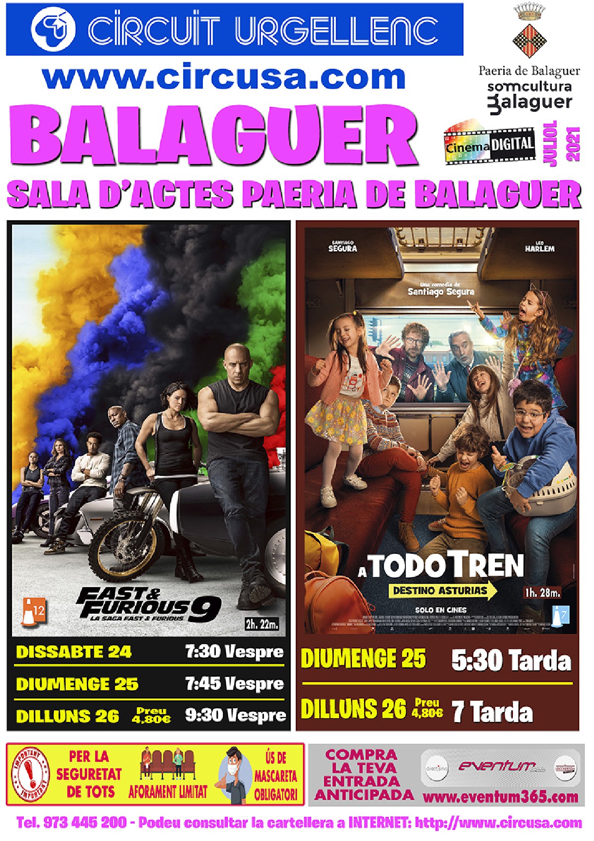 Arriba al Cinema Balaguer aquest cap de setmana la gran estrena de FAST & FURIUS 9 I també el film A TODO TREN, DESTINO ASTURIAS