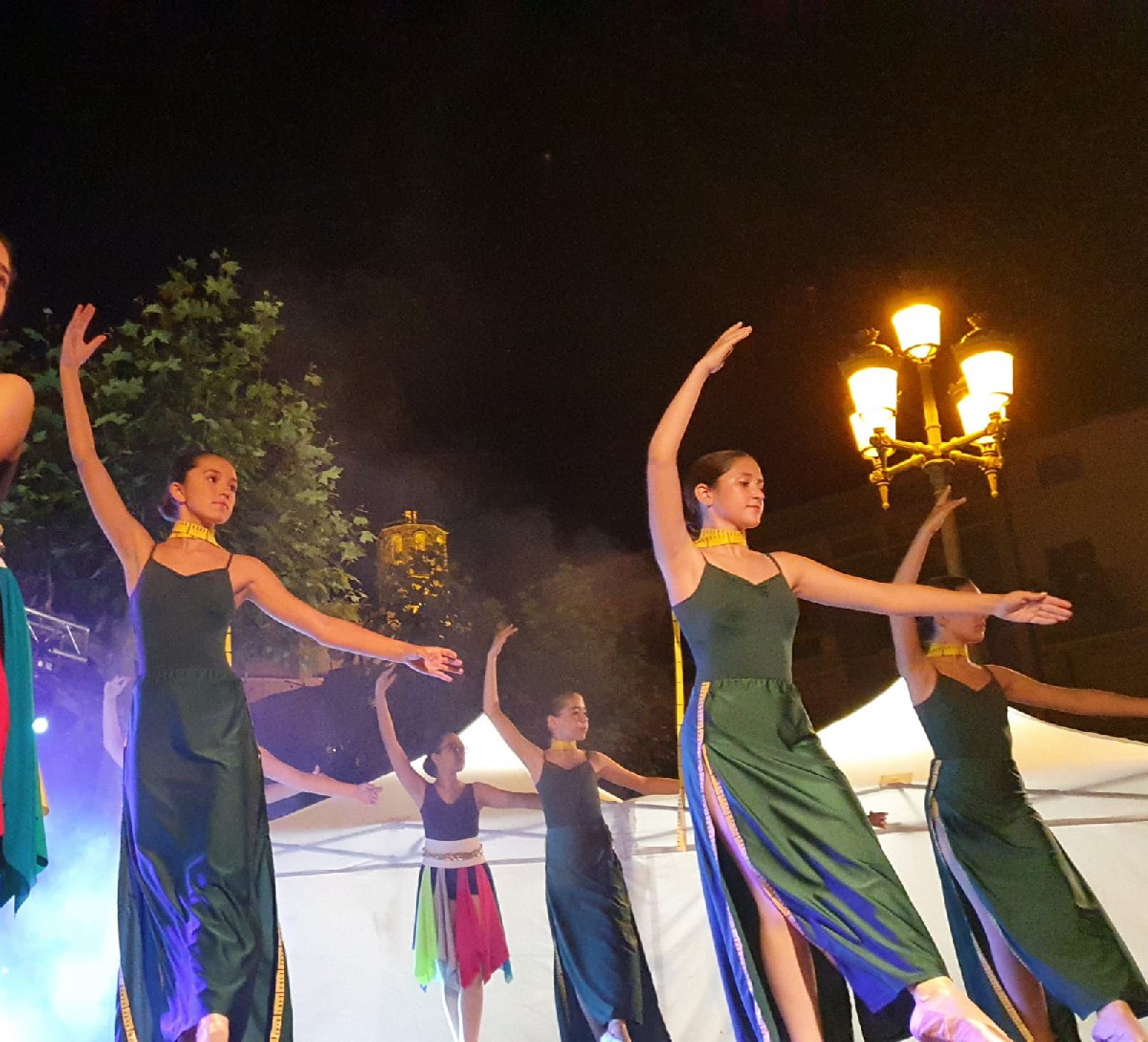 Unes 80 alumnes de l'Espai de dansa La Xemeneia de Balaguer han ofert aquest dissabte, en el marc de la Nit del Comerç, un tast de la Mostra de Dansa que aquest any duia per títol 'El fil musical de la Mirta'