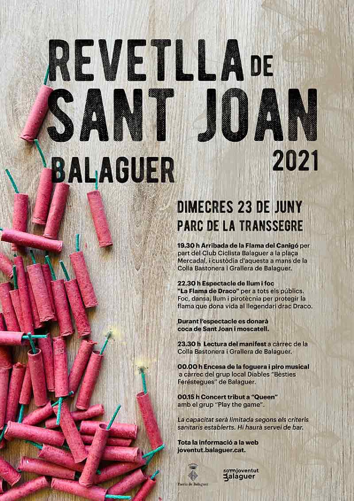 Balaguer celebra aquest dimecres la Revetlla de Sant Joan. A 2/4 d'11 de la nit tindrà lloc un espectacle de llum i foc 'La Flama de Draco', la lectura del manifest i s'encendrà la foguera amb la Flama del Canigó a càrrec de 'Bèsties Feréstegues'