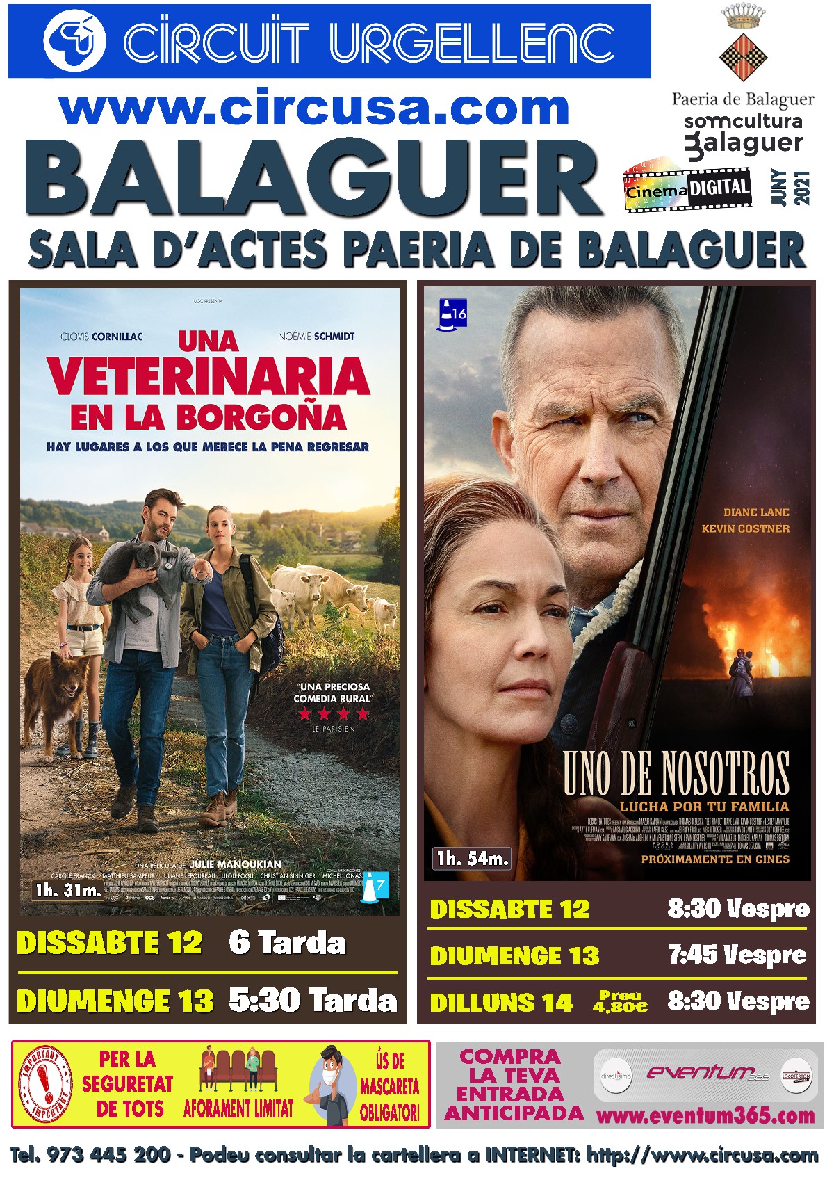Aquest cap de setmana al Cinema Balaguer es podran veure les pel·lícules: UNA VETERINARIA EN LA BORGONYA I UNO DE NOSOTROS