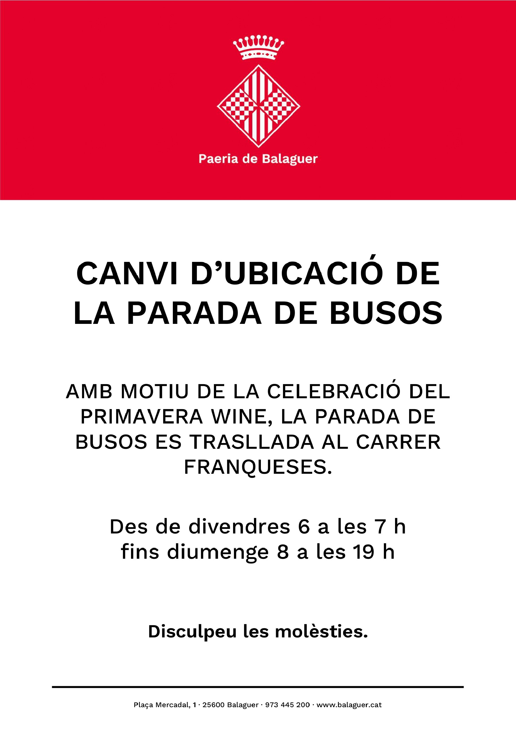 Canvi de la parada d'autobusos en motiu del Primavera Wine