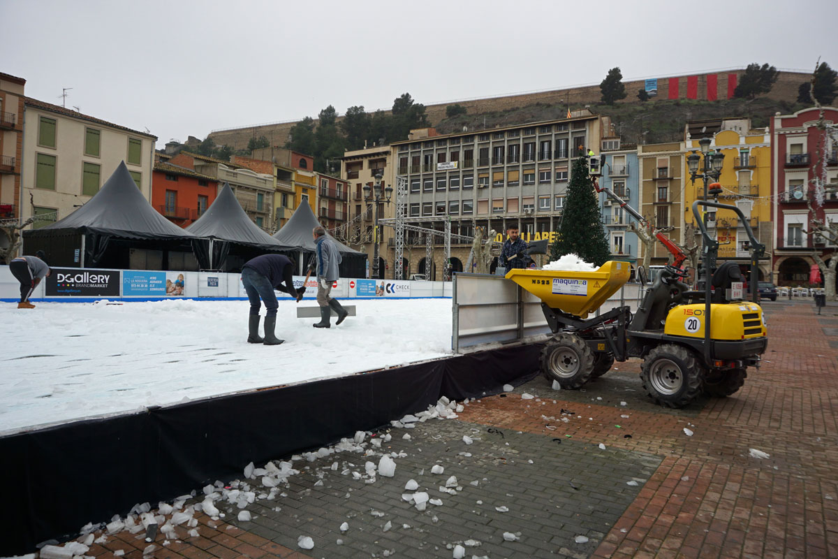 Aquest dilluns comença el desmuntatge de la pista de gel instal·lada a la plaça Mercadal de Balaguer. Del 5 de desembre al 12 de gener, prop de 7.500 persones han gaudit per segon any consecutiu de la pista.