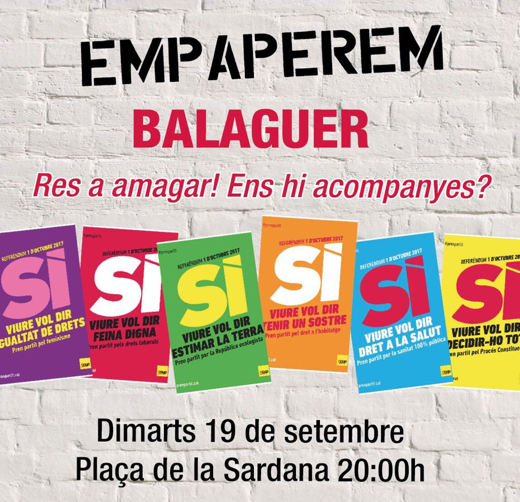 La CUP impulsa a Balaguer la campanya 'Empaperem', una iniciativa en resposta a l'ofensiva de l'Estat espanyol contra la celebració del referèndum.