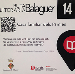 Aquest diumenge es fa a Balaguer un nou recorregut de la Ruta Literària. S'aprofitarà l'ocasió per presentar l'edició impresa del recorregut.