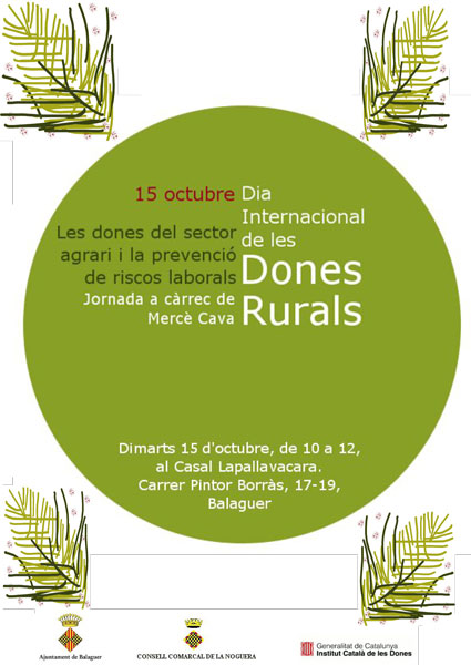 Balaguer celebra demà el Dia Internacional de les Dones Rurals amb una xerrada al casal Lapallavacara sobre les dones del sector agrari i la prevenció de riscos laborals.