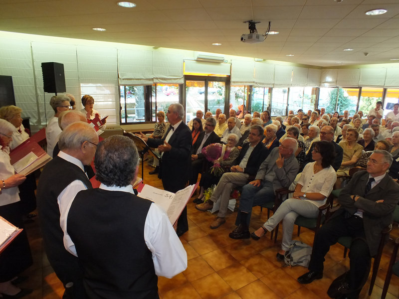 L'alcalde de Balaguer, Josep Maria Roigé, acompanyat de la regidora de Serveis a les Persones, Rosana Montané, ha participat aquest matí en l'homenatge a Maria Vidal Ibánez, una àvia de la residència Sant Domènec de Balaguer que avui ha fet 100 anys.