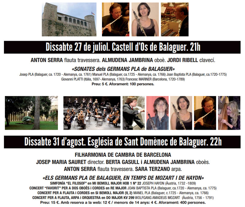 Balaguer acull demà dissabte el primer Festival Internacional de Música Germans Pla, amb l'actuació de l'orquestra Filharmonia de Cambra de Barcelona.