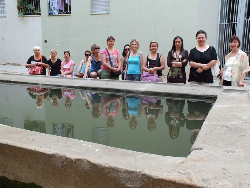 Un grup de dones que participen al projecte formatiu Frida, impulsat per l'Ajuntament de Balaguer, han participat avui en la visita guiada pel centre històric de la ciutat.