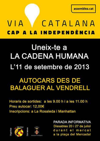Demà al matí es tanquen les inscripcions per participar a la Via Catalana amb el grup de Balaguer. El Casal ja té dos autocars plens amb sortides a les 9 i a les 11.