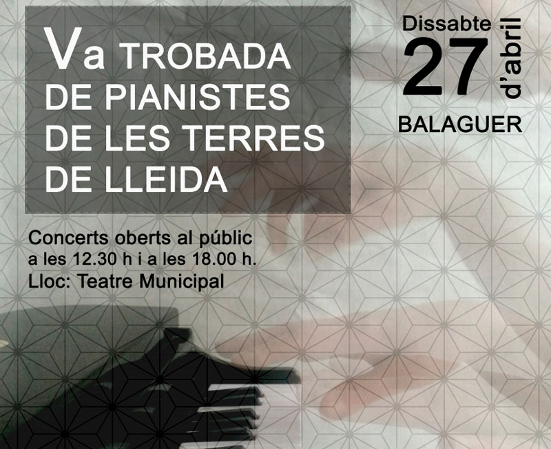 La capital de la Noguera acull demà la Va Trobada de pianistes de les Terres de Lleida amb dos concerts oberts al públic. El primer es farà a les 12.30 i el segon a les 18h. Tots dos tindran lloc al Teatre Municipal.
