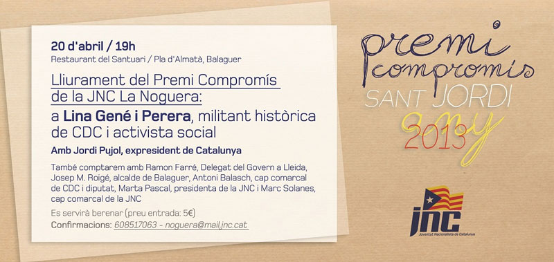 La JNC homenatjarà la històrica militant nacionalista Lina Gené. L'acte comptarà amb la presència del president Jordi Pujol.