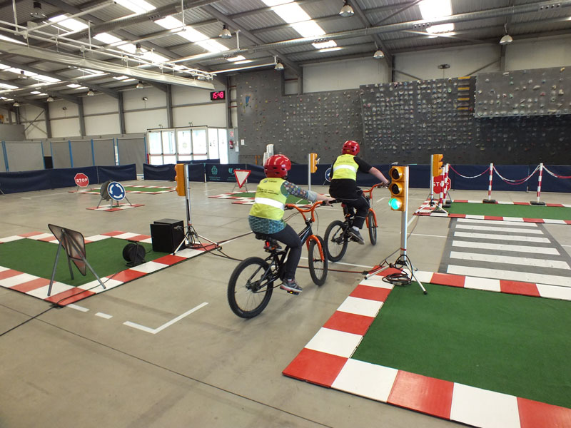Uns 500 nens i nenes de Balaguer milloren la seva educació viària. Ho fan en un parc mòbil de bicicletes al pavelló Molí de l'Esquerrà.