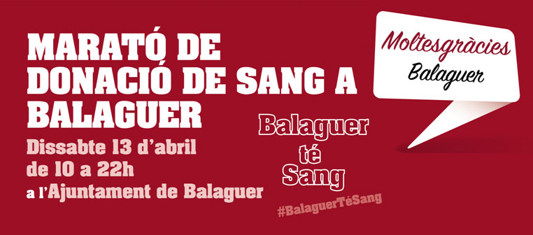 Balaguer acull demà una nova Marató de donació de sang amb l'objectiu de superar l'èxit de participació de l'anterior. Tindrà lloc de les 10 del matí a les 10 de la nit al vestíbul de l'Ajuntament.