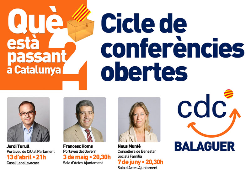 CDC a Balaguer organitza el cicle de conferències 'Què està passant a Catalunya?'. Les xerrades estan enfocades a explicar el procés de transició nacional.