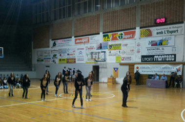 Un àrbitre fa retirar una estelada de la pista del Club Bàsquet Balaguer durant un partit jugat aquest dissabte.