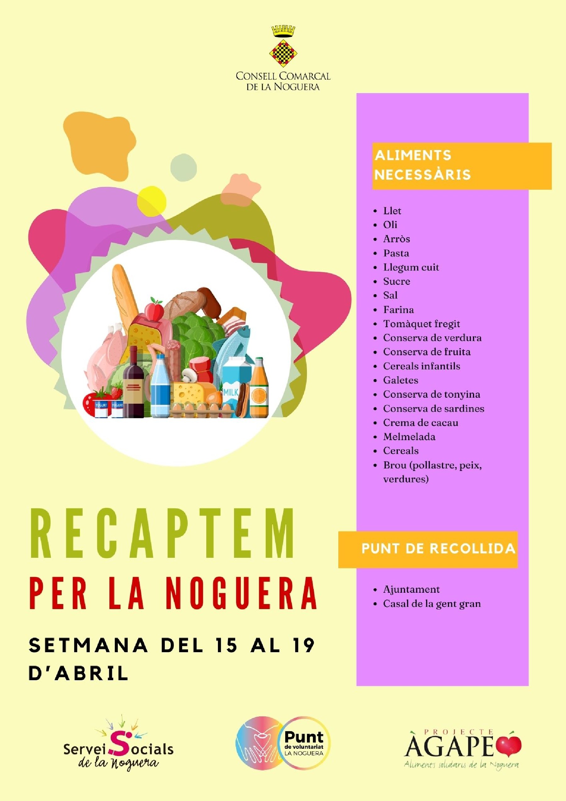 Els Serveis Socials del Consell Comarcal organitzen del 15 al 19 d'abril una nova campanya de recollida d'aliments a tota la comarca de la Noguera