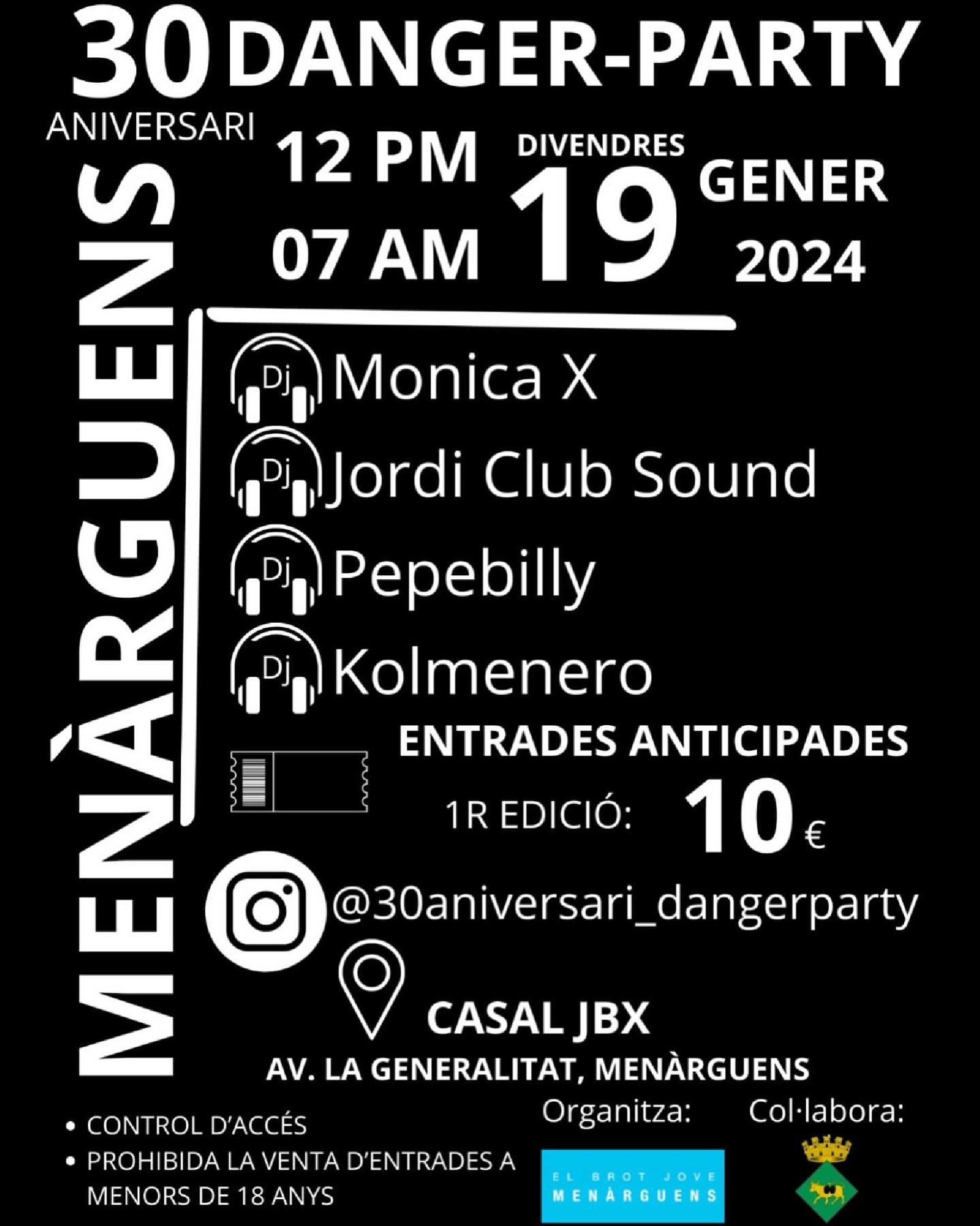 El Brot Jove de Menàrguens prepara una macro festa en record de la Danger Party. Hi actuaran djs de l'època com Monica X, Jordi Club Sound o Kolmenero i ja s'han posat a la venda les entrades anticipades