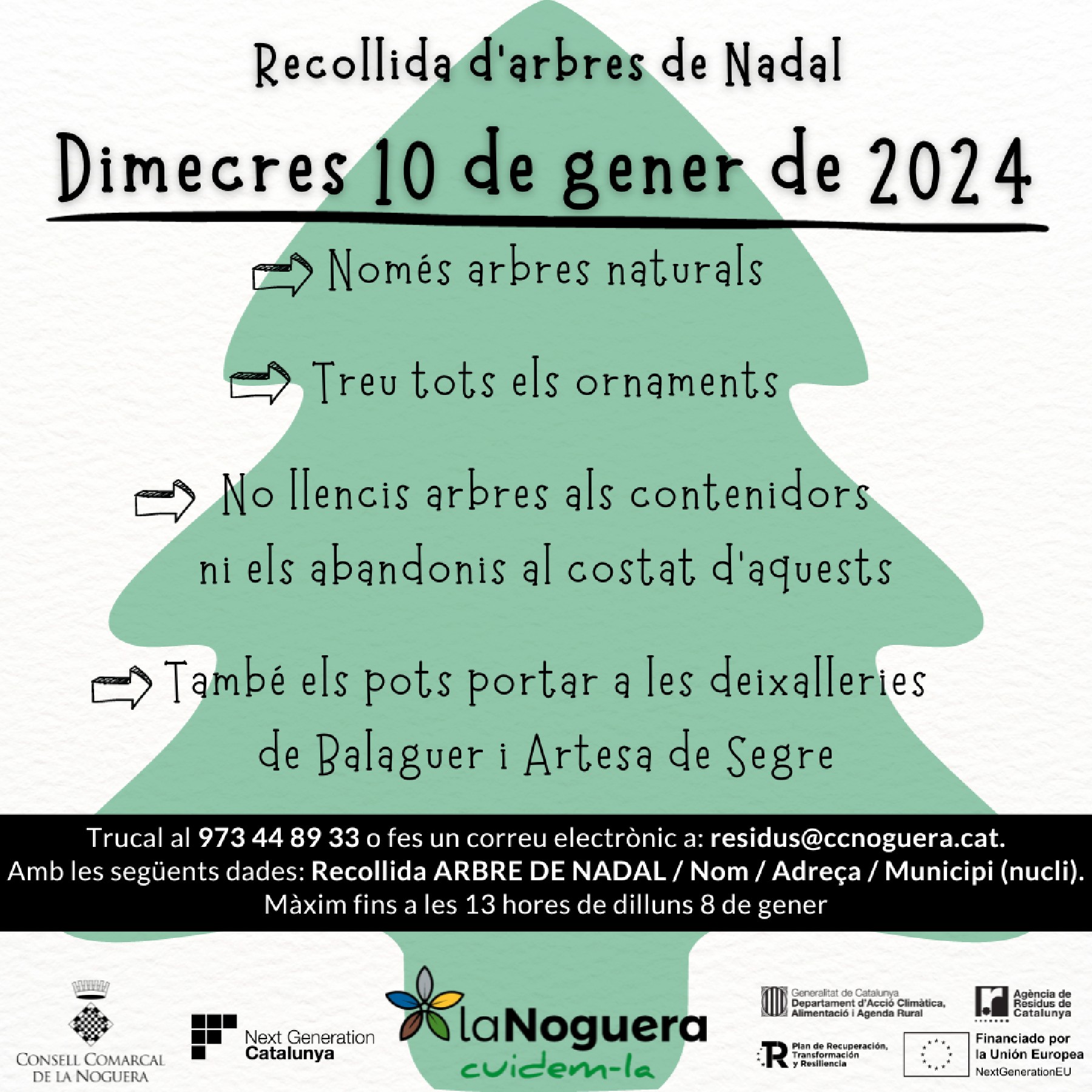 Nou servei de recollida dels arbres de Nadal passat festes. El dia 10 de gener es recolliran porta a porta prèvia sol·licitud
