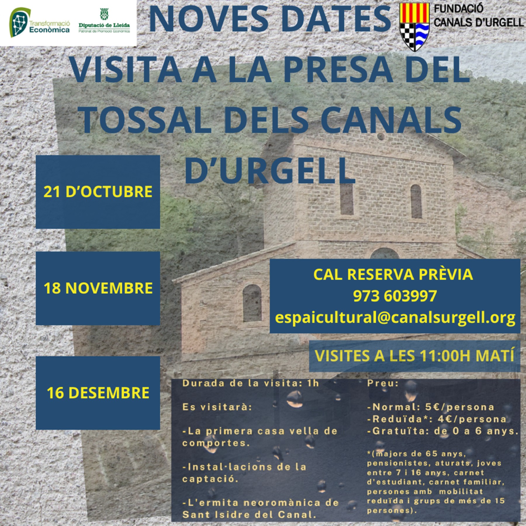 Aquest dissabte tornen les visites a la Presa del Tossal dels Canals d'Urgell, a Ponts