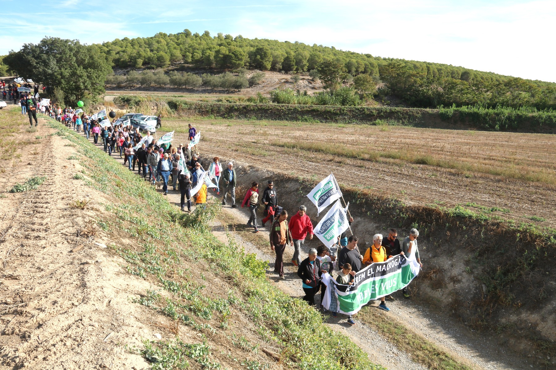 Unes 250 persones fan una marxa a peu contra la macrocentral de biogàs projectada a la Sentiu de Sió. Amb tres sortides des de municipis afectats pel projecte, la marxa ha finalitzat al punt on es vol ubicar la planta