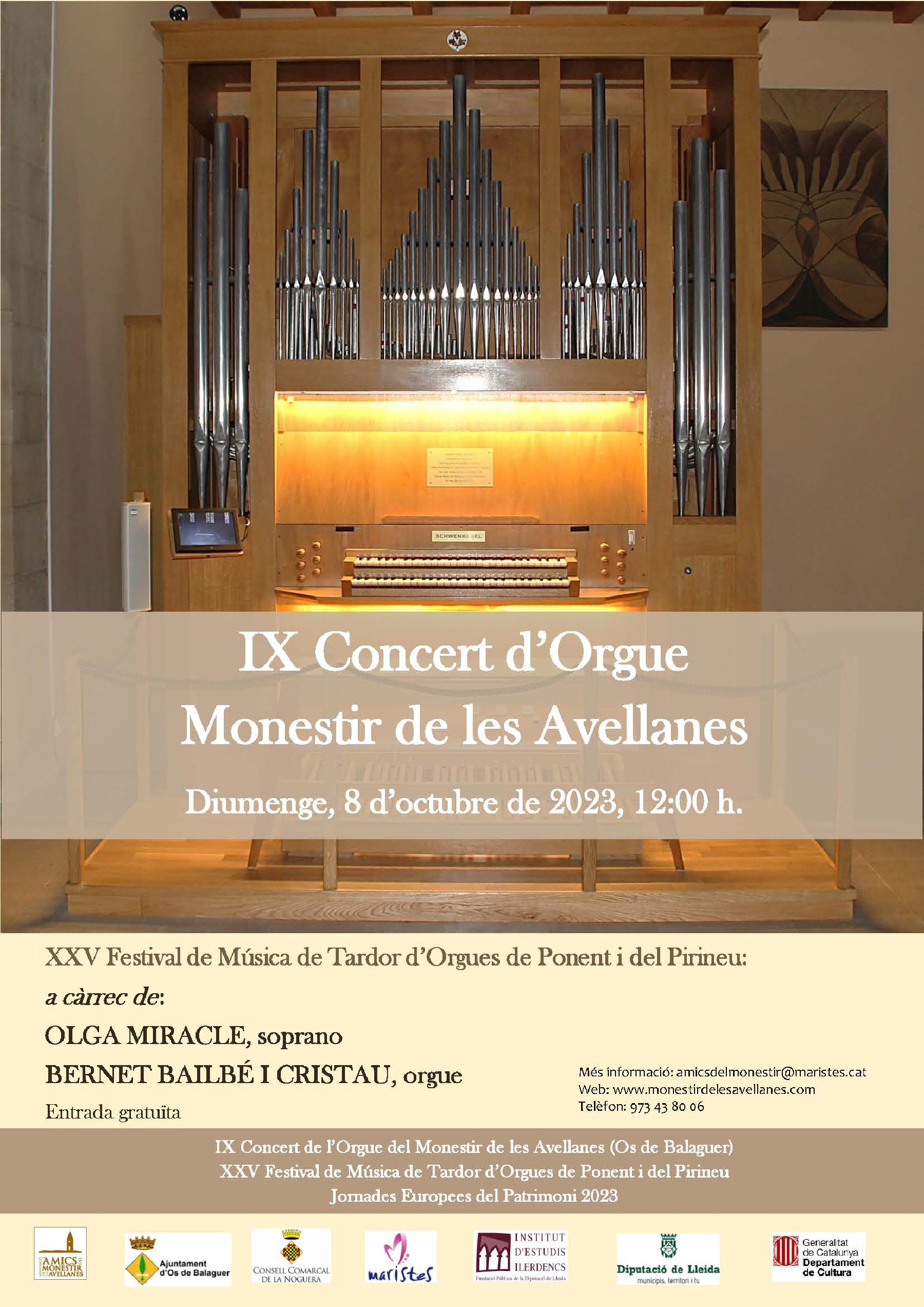9è Concert d'orgue de tubs del Monestir de les Avellanes. Dins de la 25è edició del Festival d'Orgues de Ponent i del Pirineu 2023