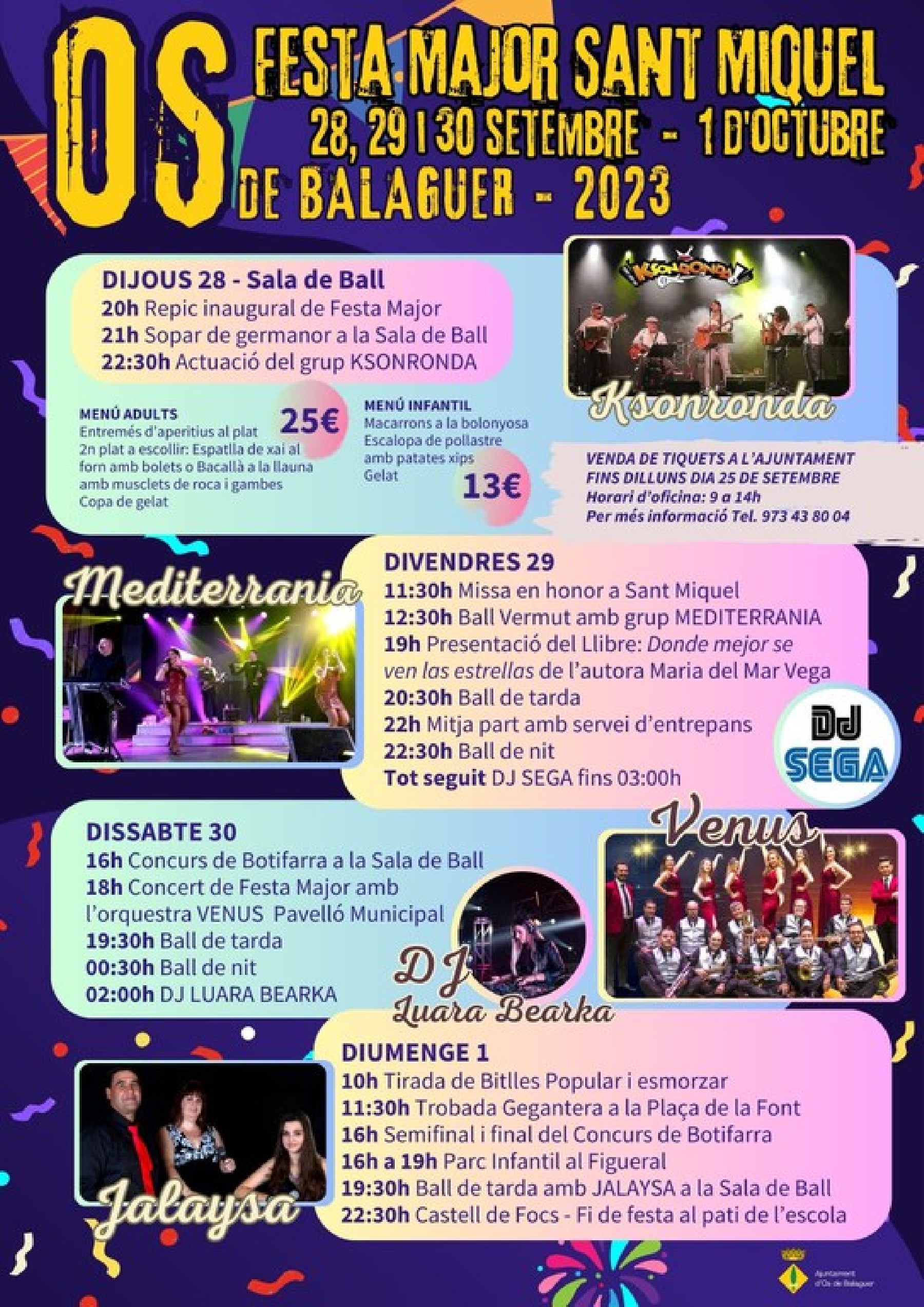 Os de Balaguer celebra la Festa Major de Sant Miquel amb concerts, balls i djs de nit, però també amb els actes més tradicionals com la missa i el vermut popular