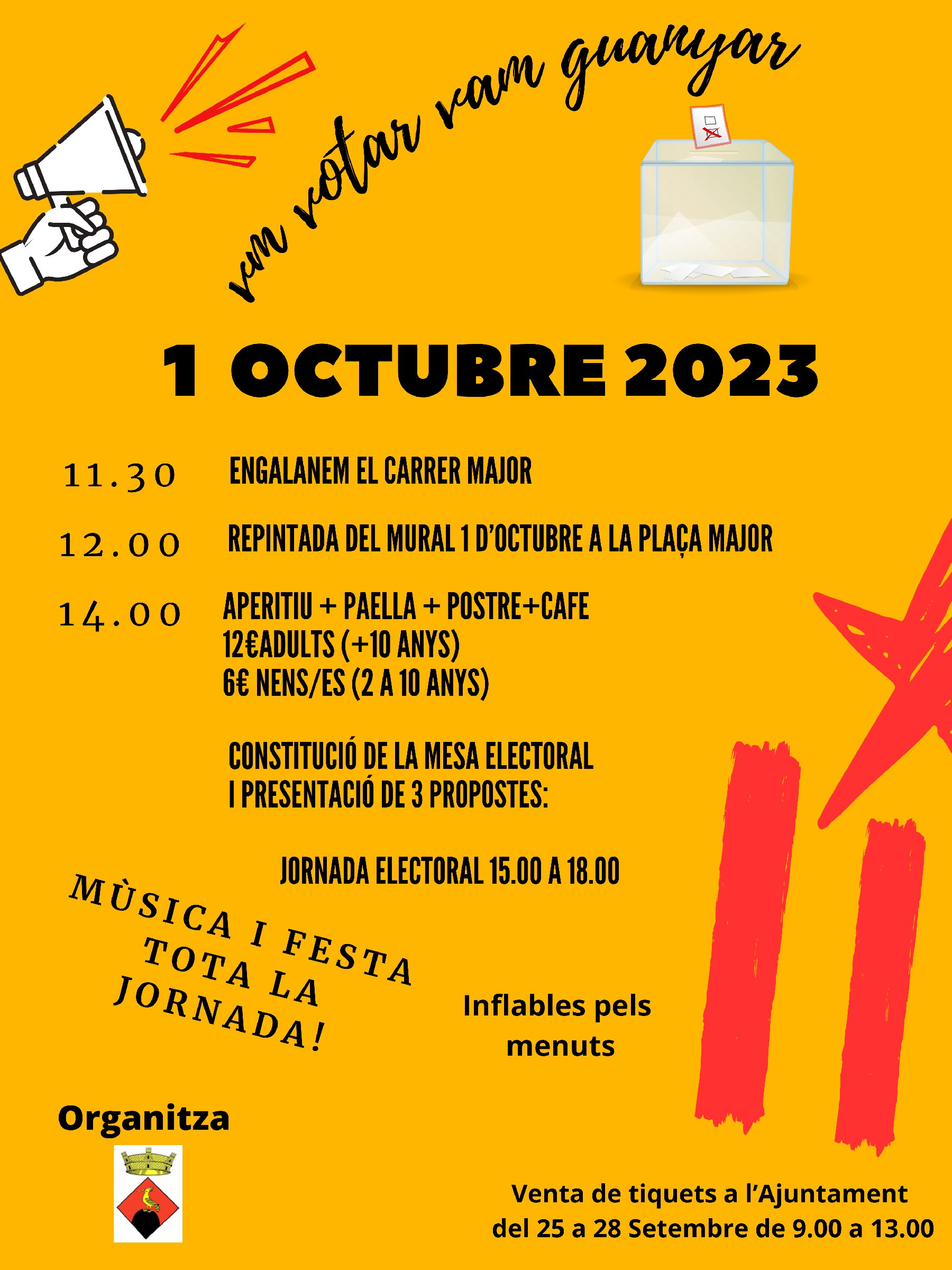 Bellmunt d'Urgell celebra aquest diumenge la Festa de record de l'1 d'Octubre. Es repintarà el mural de la Plaça Major, hi haurà un dinar popular i un procés participatiu de les entitats locals