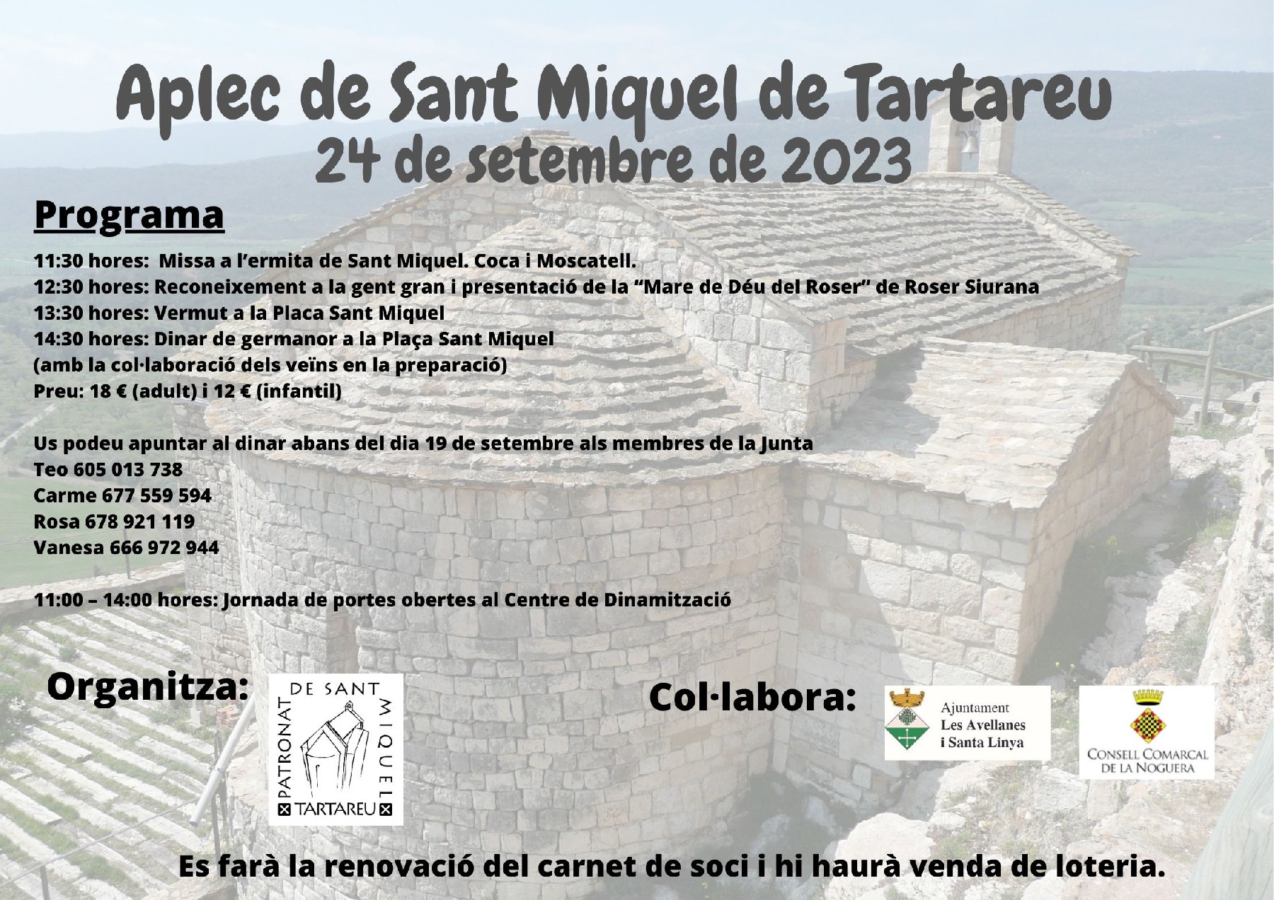 Torna l'aplec de Sant Miquel de Tartareu. Es realitzarà aquest diumenge i inclourà la tradicional missa, vermut i dinar popular a la plaça