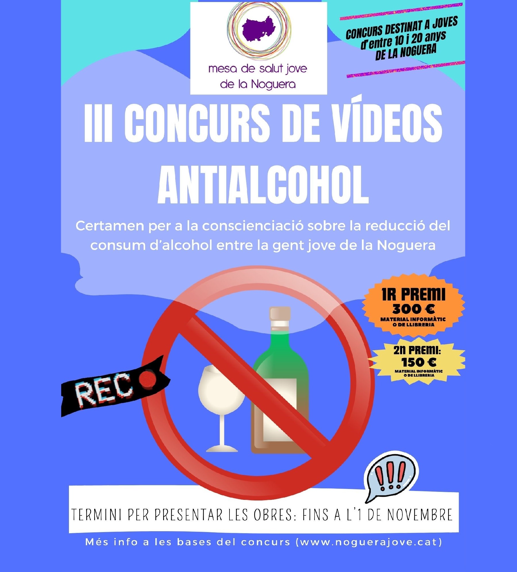 Convocat el 3r Concurs de Vídeos Antialcohol de la Noguera . Hi poden participar totes les persones joves de la comarca de 10 a 20 anys