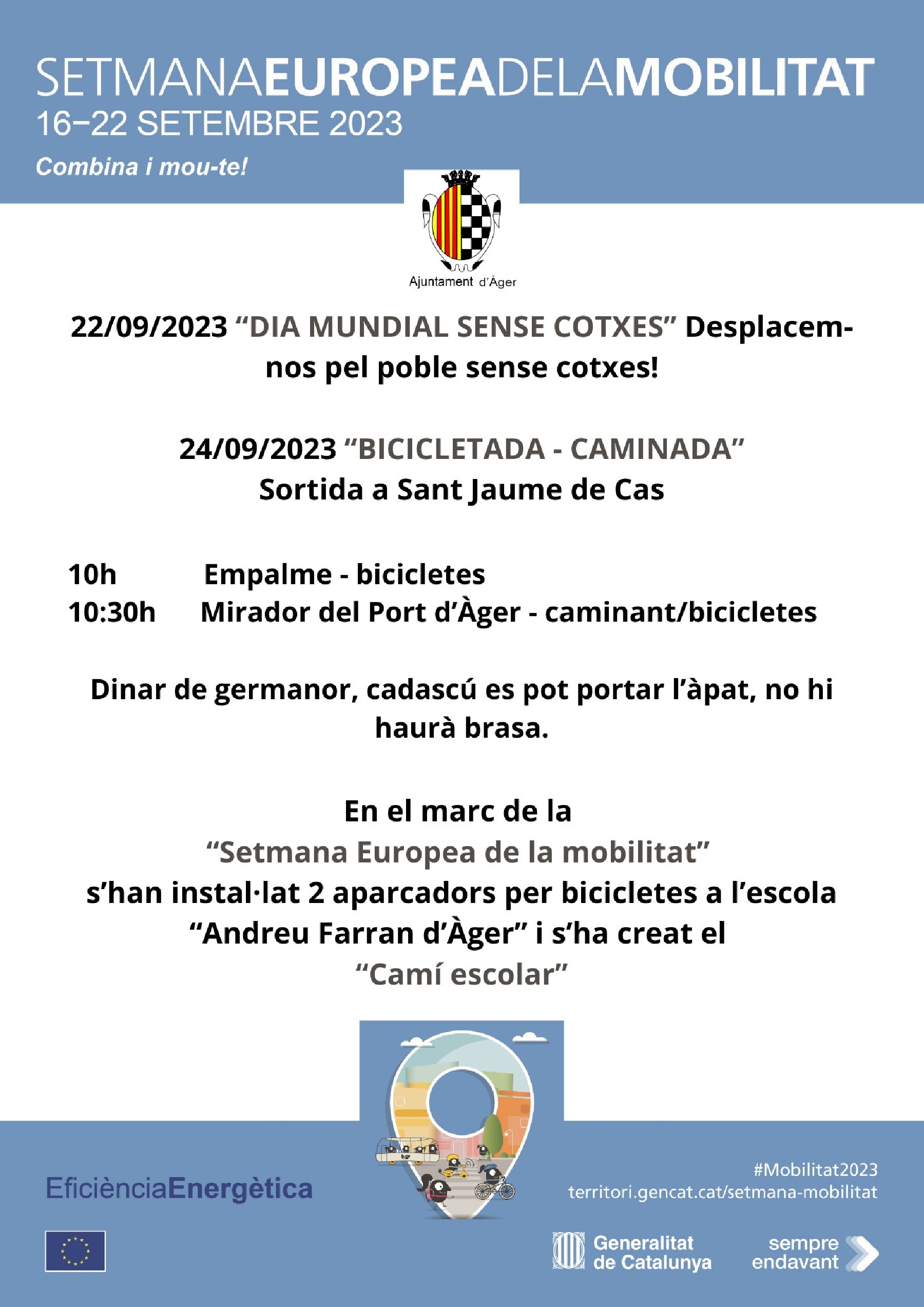 Aquest diumenge el municipi d'Àger organitza una bicicletada-caminada en el marc de la Setmana Europea de la Mobilitat