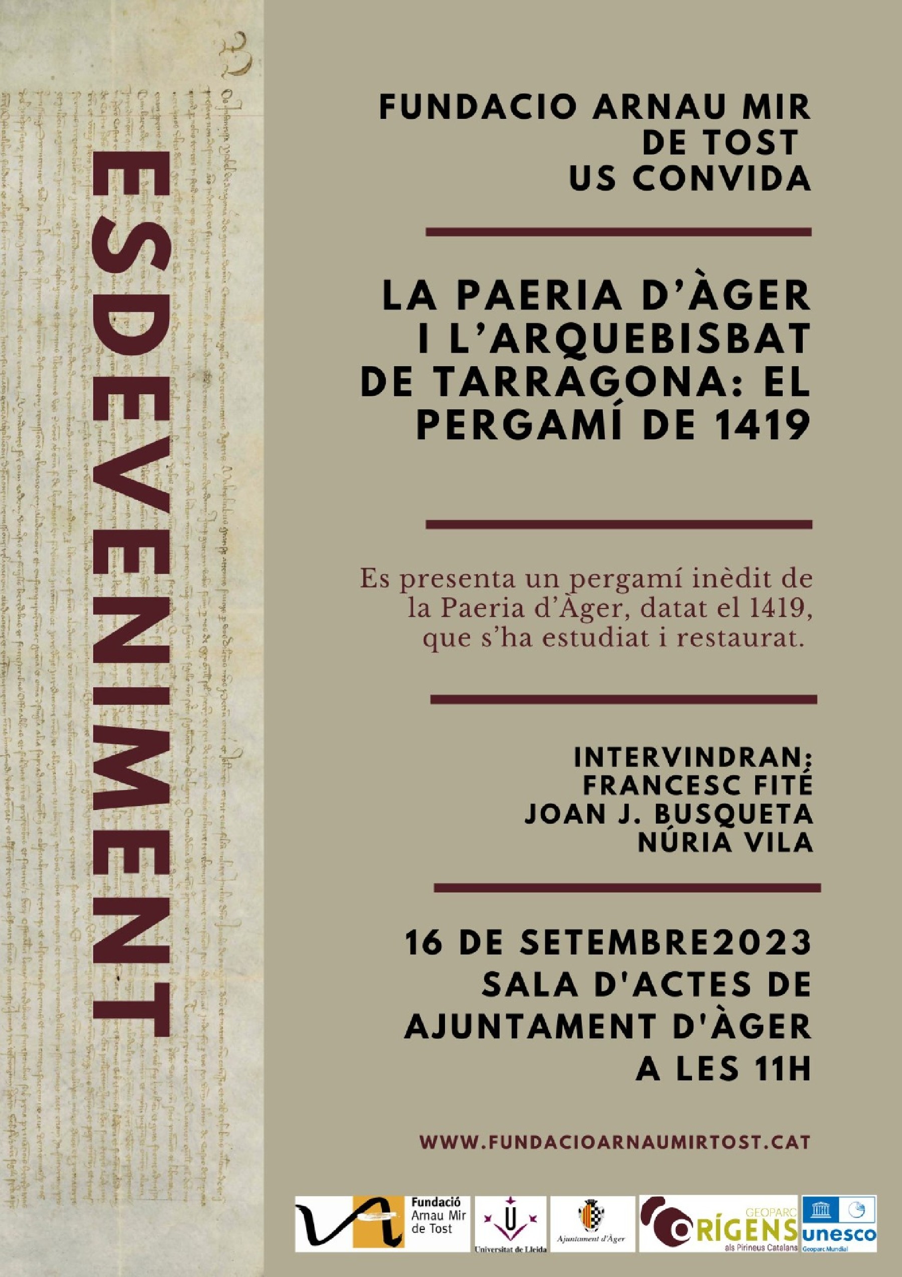 Àger presentarà aquest dissabte un pergamí inèdit de la Paeria d'Àger, datat el 1419, on es confirmen privilegis i franquícies de la vila