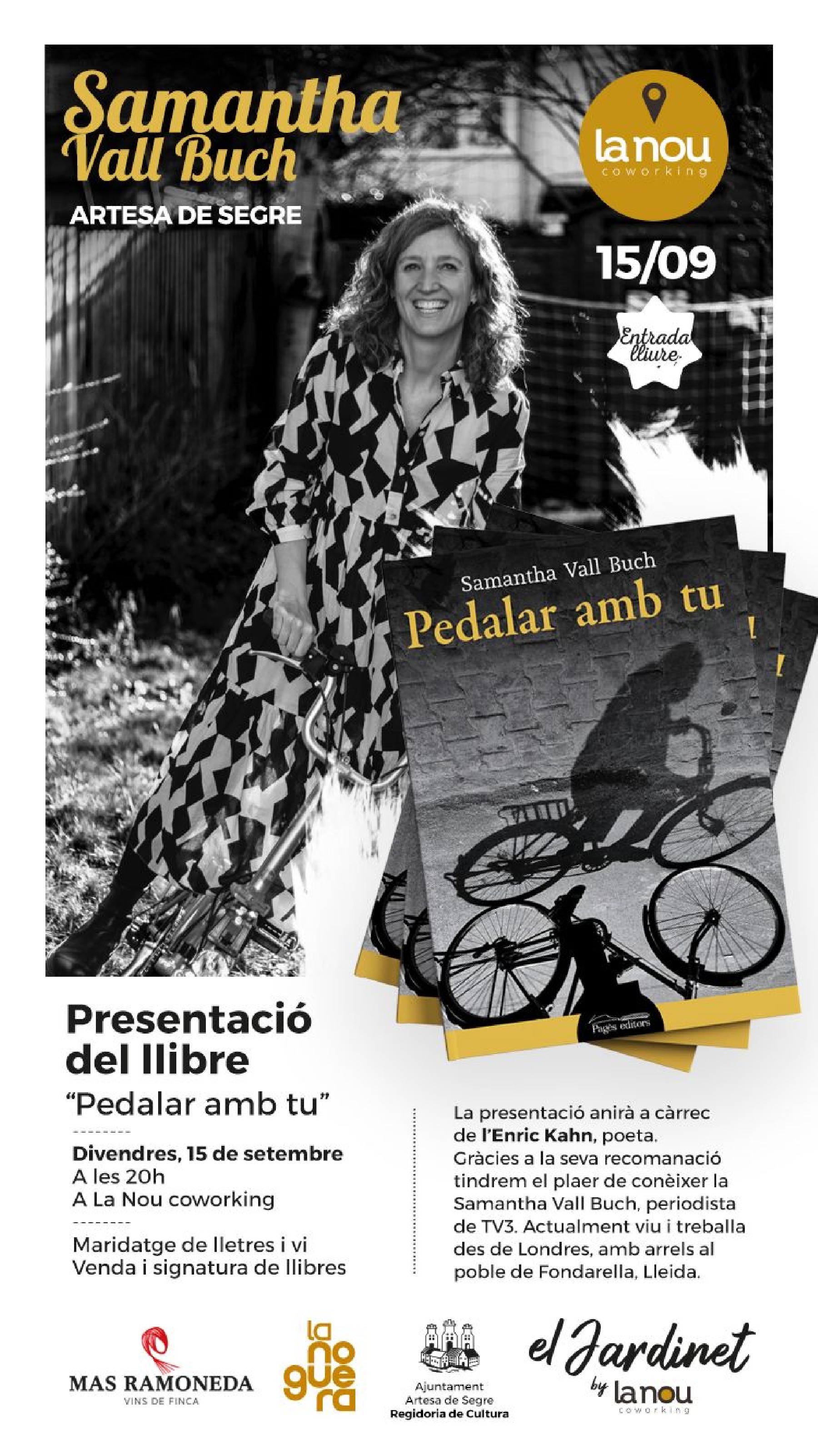 Aquest divendres es presentarà a Artesa de Segre el llibre Pedalar amb tu' de la periodista Samantha Vall. Serà en un acte a La Nou Coworking en que es maridarà lletres, vi i formatge