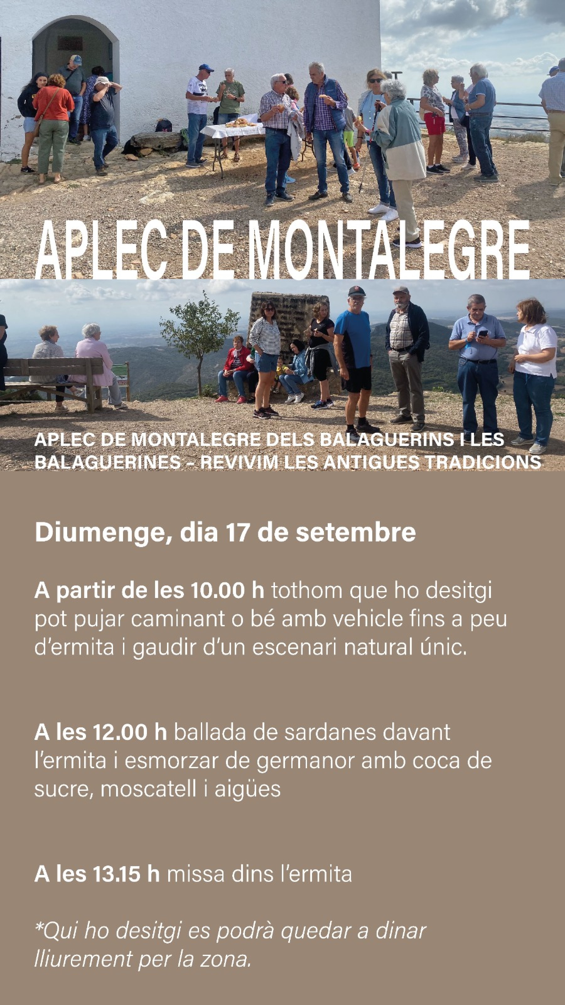 Aquest proper diumenge dia 17 de setembre se celebra el tradicional Aplec de balaguerins a Montalegre